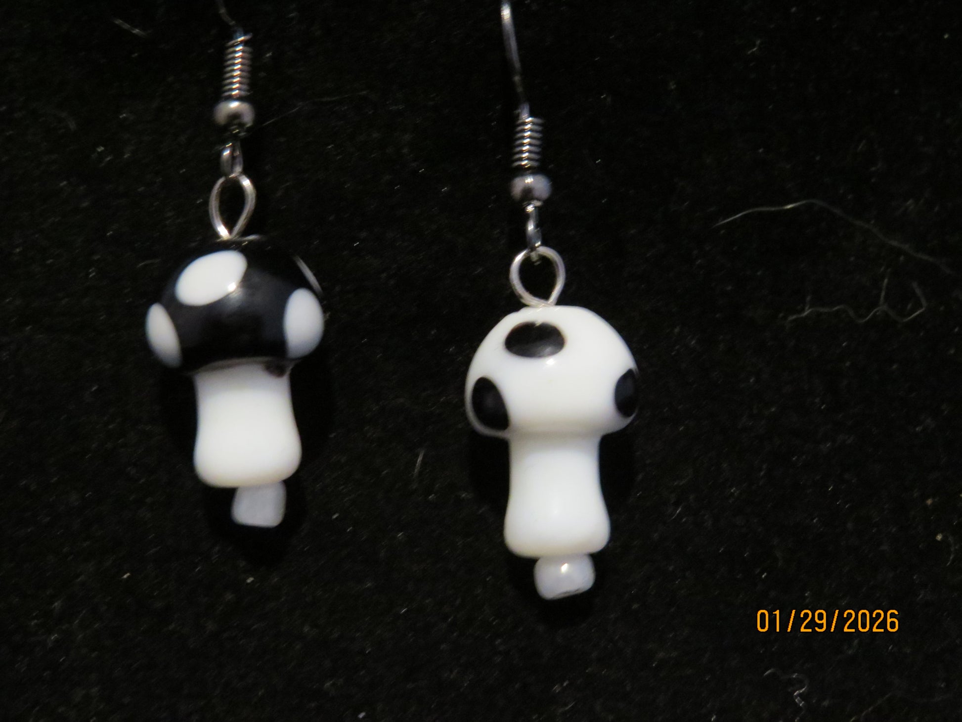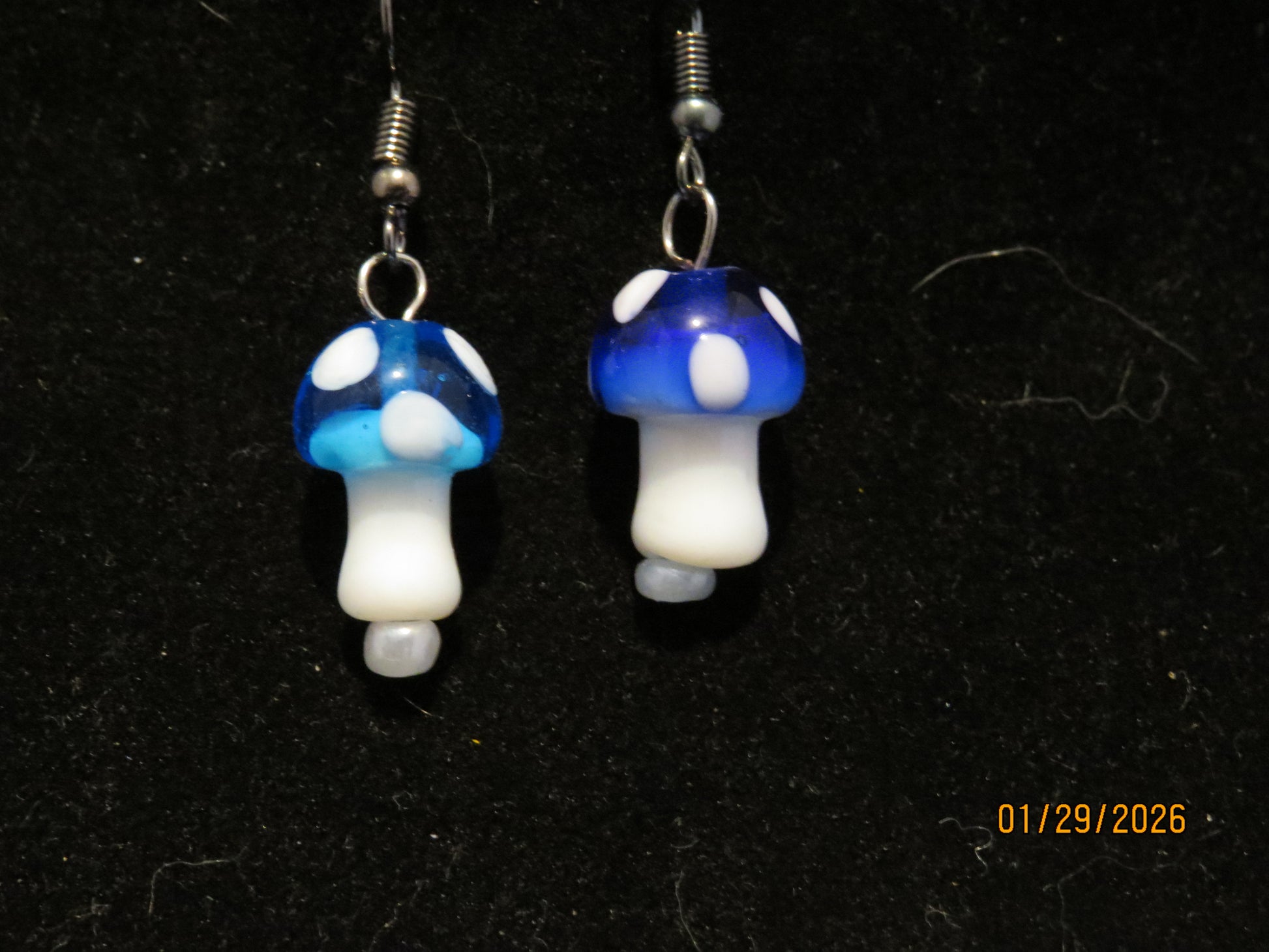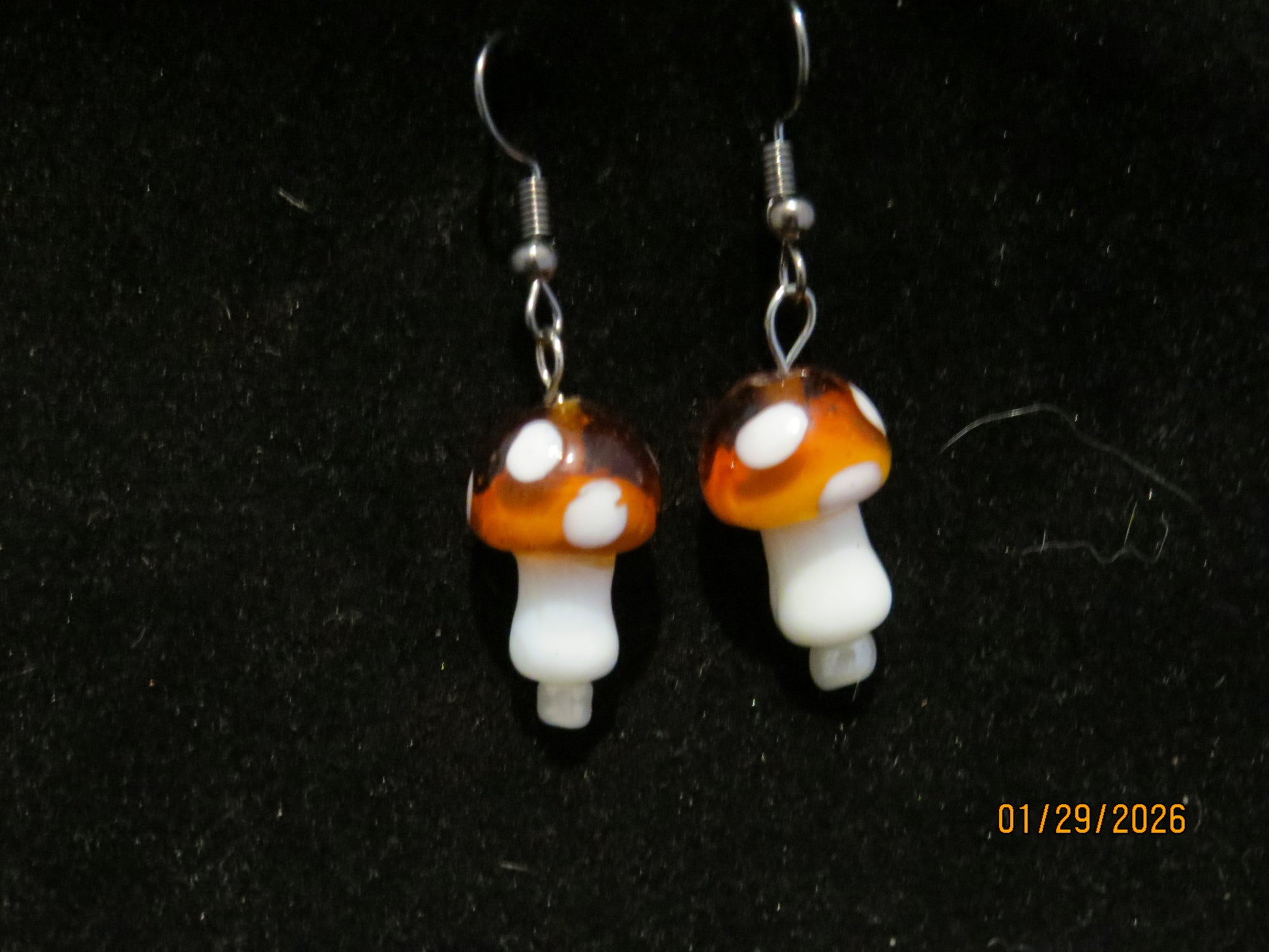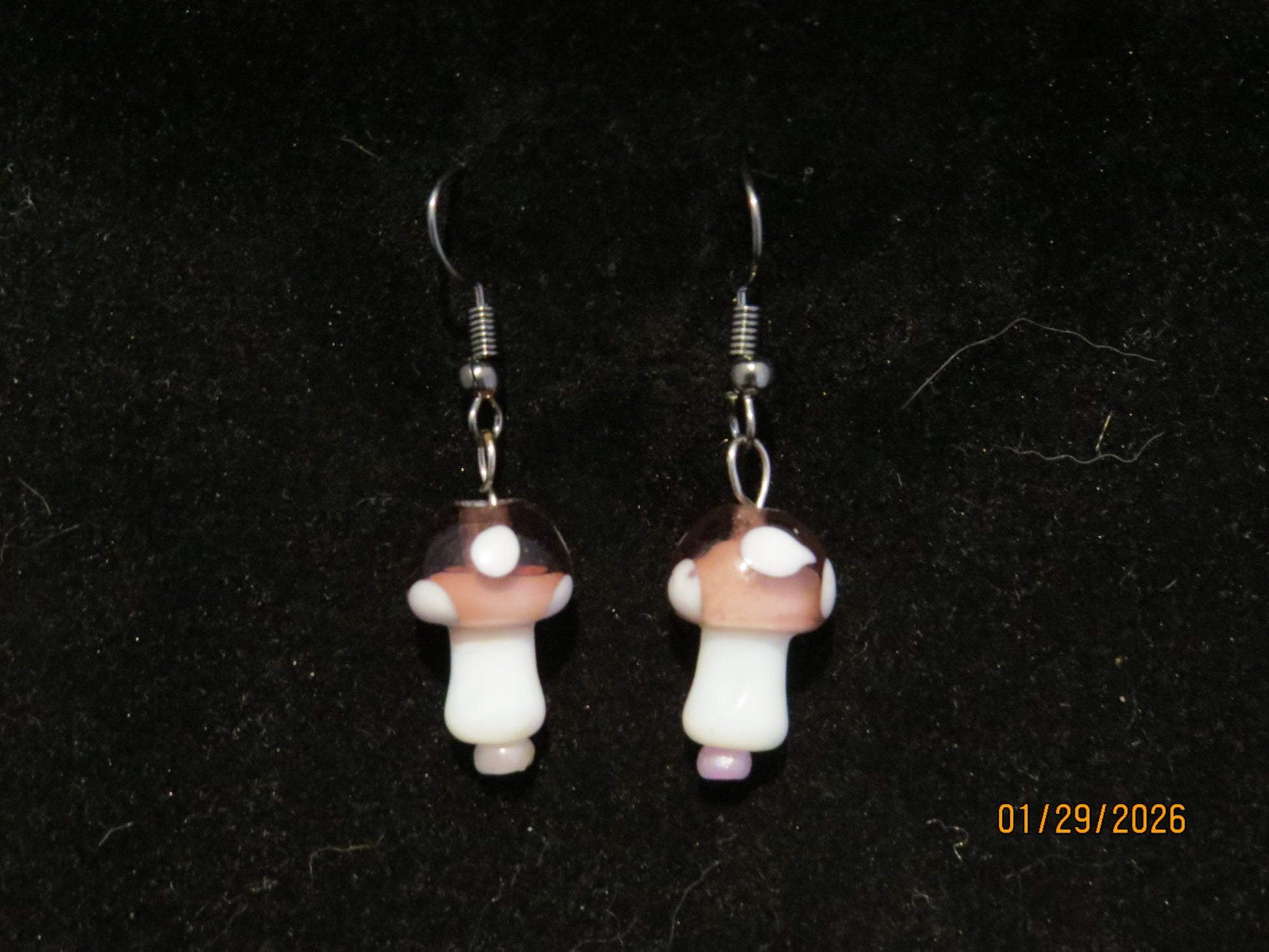 Handcrafted glass mushroom earrings featuring vibrant, hand-applied colors that catch the light beautifully. Each pair showcases meticulous artisan work, with unique color variations that make every set one-of-a-kind. The whimsical mushroom design adds personality to any collection, while the lightweight glass construction ensures comfortable all-day wear. Perfect for nature lovers and those who appreciate distinctive, wearable art.