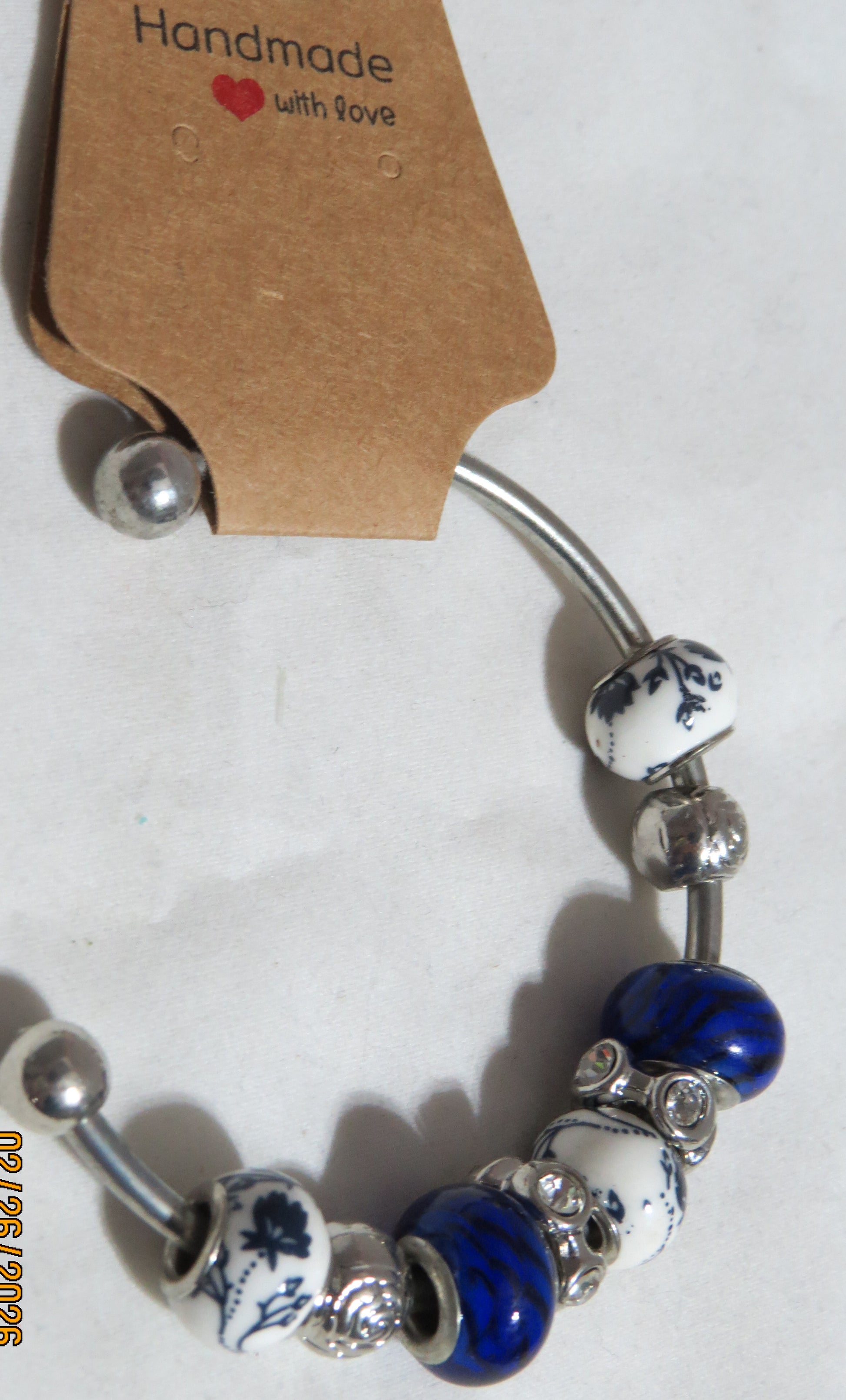This exquisite Flower Glass Beaded Bangle Bracelet showcases artisan craftsmanship through carefully selected blue and purple flower glass beads paired with complementary glass accents in coordinating hues. Silver metallic details throughout the design add sophisticated contrast and visual refinement. The silver-plated bangle base provides a durable foundation while contributing an elegant frame to the beadwork. The combination of floral glass elements with metallic accents creates a piece that captures both natural inspiration and polished elegance. Designed for those who appreciate distinctive jewelry that balances artistic detail with wearable sophistication.